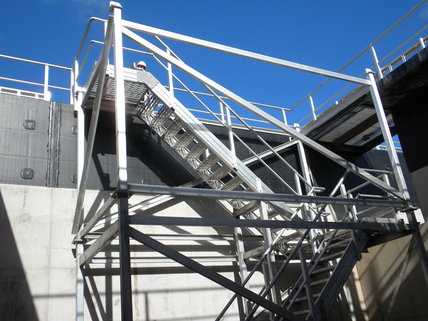 Hallweld Safety supplied and installed the aluminum handrails and grating platforms at the Christies Beach Water Filtration Plant in Adelaide. Aluminum is used in such projects where corrosion resistance is a priority due to a lot of water exposure.